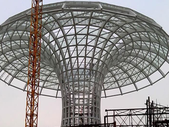 二、球形网架结构因其结构新颖,受力合理,自重轻、用钢量低等优点。如大型体育场馆球形台州螺栓球网架、公共场馆球形网架、电厂台州螺栓球网架、水泥工业球形网架、仓储物流球形网架、台州干煤棚工业球形网架、台州收费站台州加油站球形网架、展览中心、影剧院、商场、航站楼、候车厅、工厂台州车间、仓库、电视塔等球形螺栓球节点网架。国内球形网架结构主要分为:台州焊接球节点网架及螺栓球节点网架两种。螺栓球节点网架其构件工厂内加工量较大,现场安装便捷,适用于现场工期紧,台州施工条件、用电量受制约,网架形状复杂、台州杆件定位困难的异形结构。螺栓球节点球形网架系统基本由台州杆件、螺栓球、支撑支座等组成。按照节点形式可分为交叉台州桁架体系、四角锥体系、三角锥体系等。支撑方式多为固定支座支撑。对于大面积、大跨度及有特殊受力或伸缩要求的网架结构可采用橡胶支座、滑移支座、球铰支座等支撑形式,以满足结构自身的受力稳定、均衡,便于内力释放等设计要求。